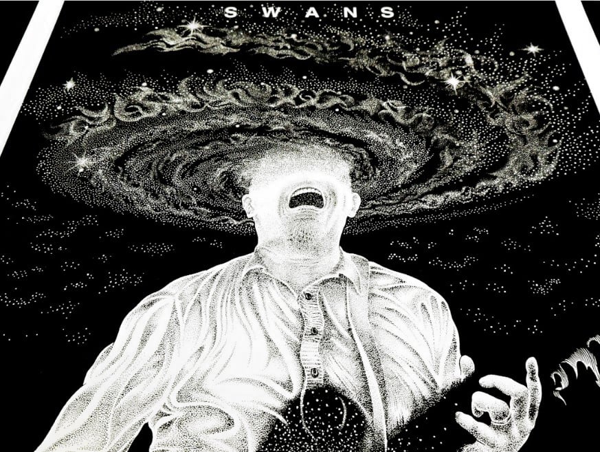 Back by popular demand, and with kind permission by Michael Gira, this is the second and final reprint of my poster originally created for Swans' concert in Leipzig, October 2014. Art edition, without the venue and date info.